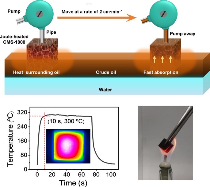 660 Joule-heated carbonized melamine sponge for high-speed absorption of viscous oil spills,
