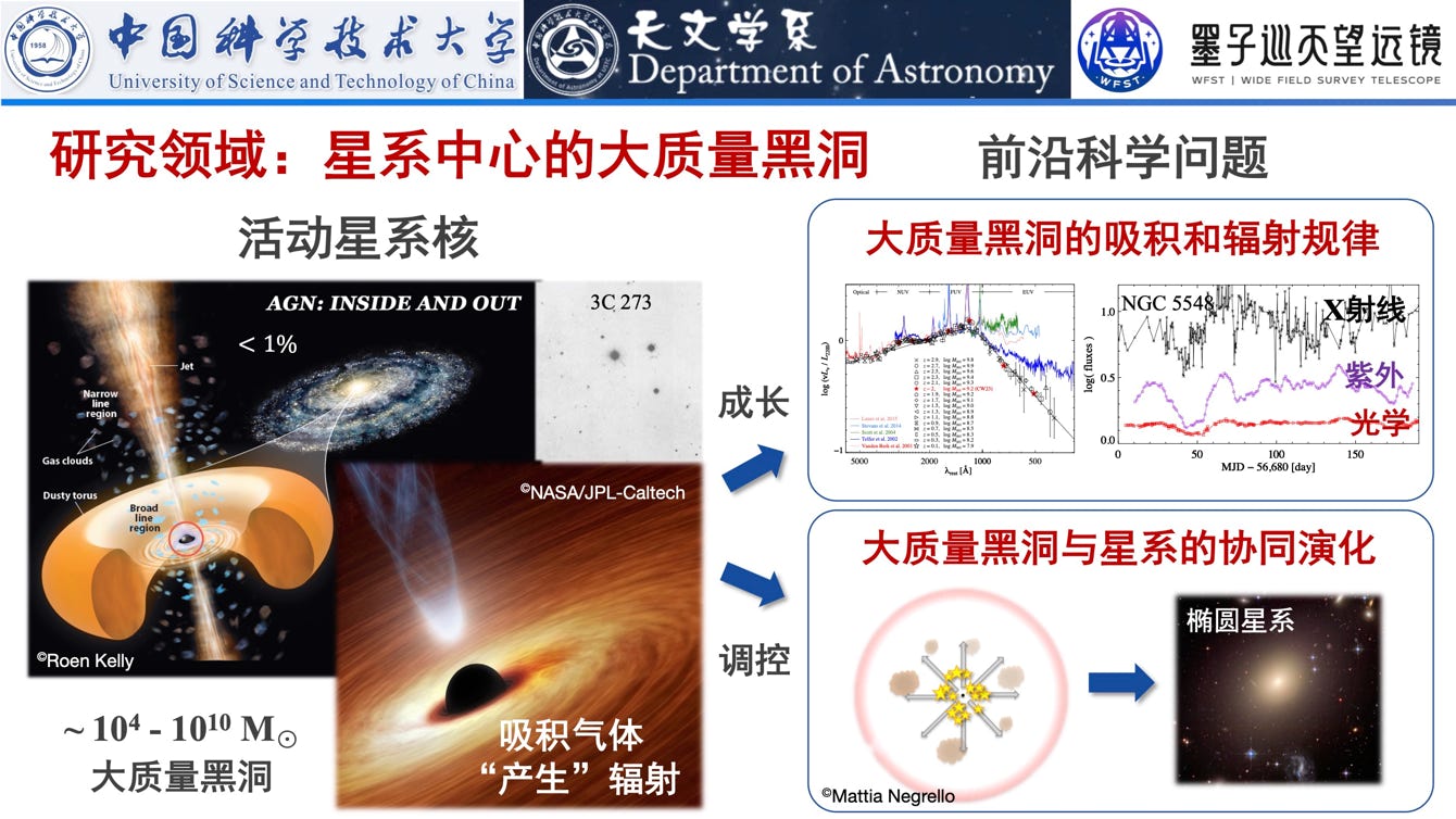 ✓Su et al. (2025, ApJ, 990, 10): Analyzing the interband lags of 94 bright and massive (~10^8 M_sun) AGNs at z < 0.8 using gri-band light curves from Zwicky Transient Facility Data Release 22, he found that more than half of these AGNs exhibit significant seasonal (one-year) variations in their interband lags. Furthermore, he revealed that the short-term lags (measured over one year) are consistently shorter than the long-term lags (measured over six years)—a result that supports his earlier theoretical simulations.